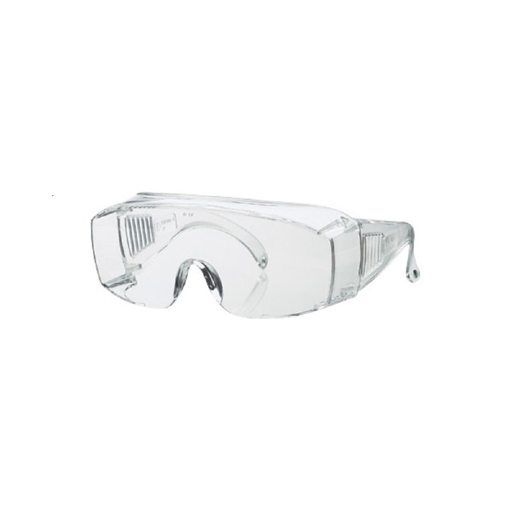 Deep box style front profile to cater for wearing overall sizes of prescription eyewear. Ideal as a visitor's safety spectacle. Polycarbonate lens with fully vented side shields.
