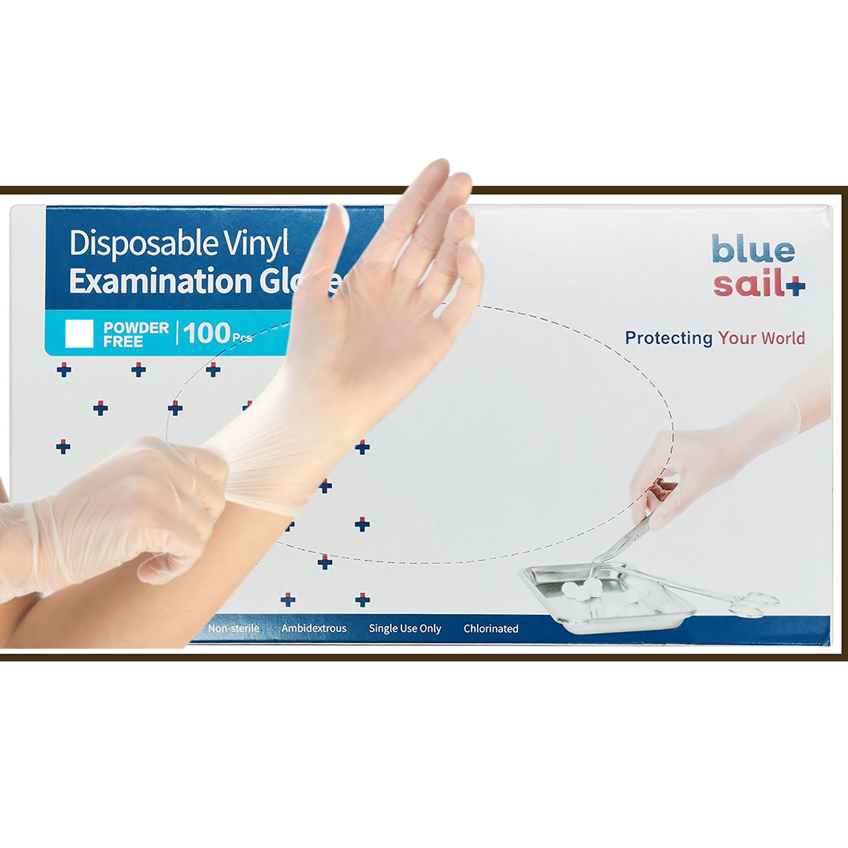 Bluesail Clear Vinyl Examination Gloves - Box of 100