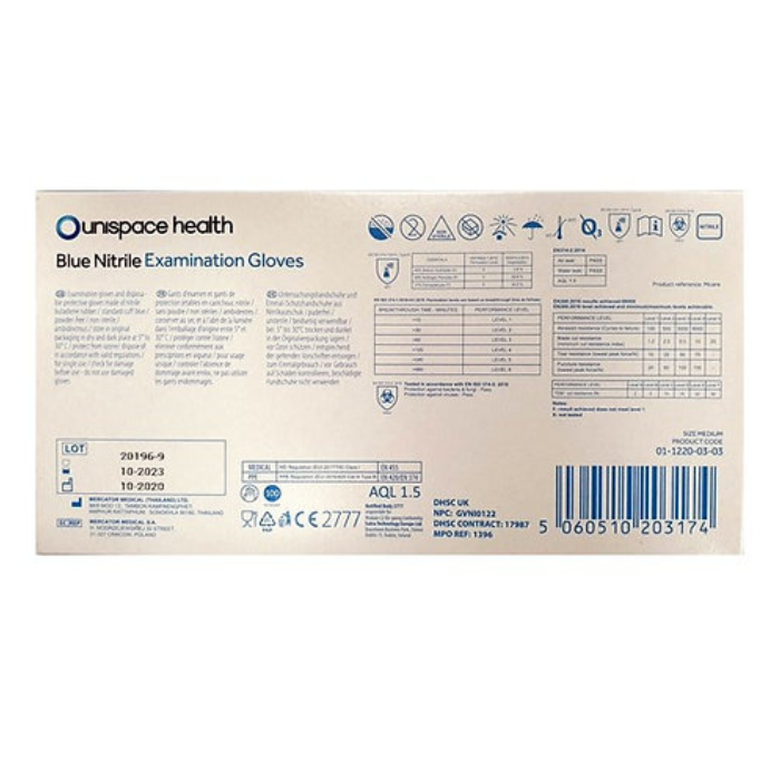 Unispace Blue Nitrile Examination Gloves - Pack of 100